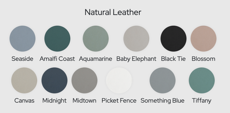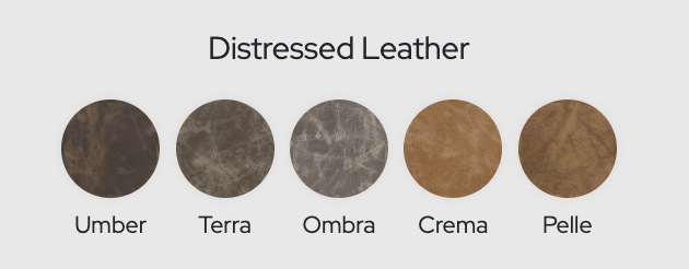 100% natural, Italian leathers that are selected for their exceptional texture, strength, and durability. The Distressed Leathers enamor with their aged beauty. Colored Leathers are both smooth and luxurious.