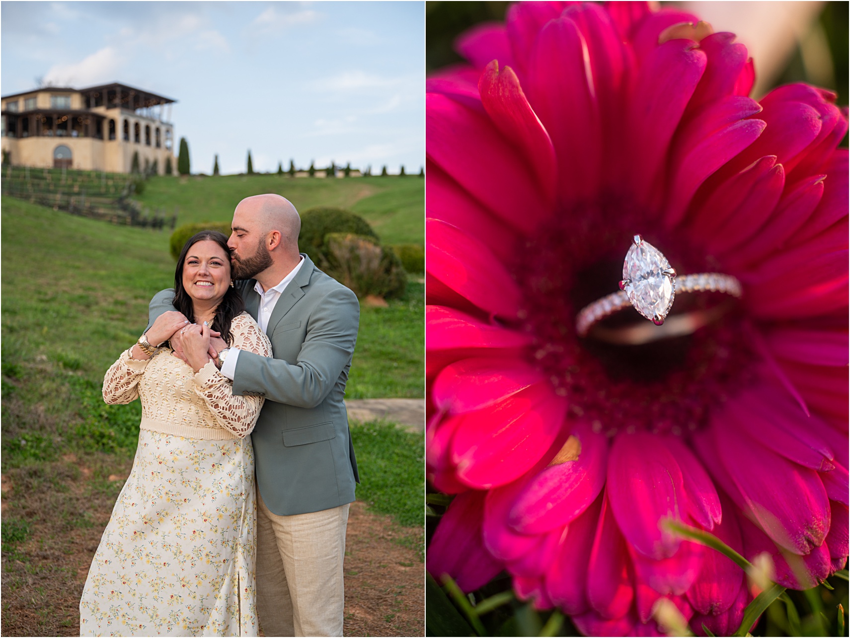 Like so many couples in 2026, Nick and Erika met online- specifically Hinge. Their story started with a simple swipe, but it quickly grew into something much deeper. By the time this day came, their connection felt strong and steady. They arrived at Montaluce Winery like it was just another outing. Erika had no idea what was about to happen, no idea her Montaluce proposal was about to go down, so much so that she tried to get them to walk another direction initially. Nick stayed calm while also internally panicking a bit, but eventually he was able to lead her to a spot that overlooked the vineyard.